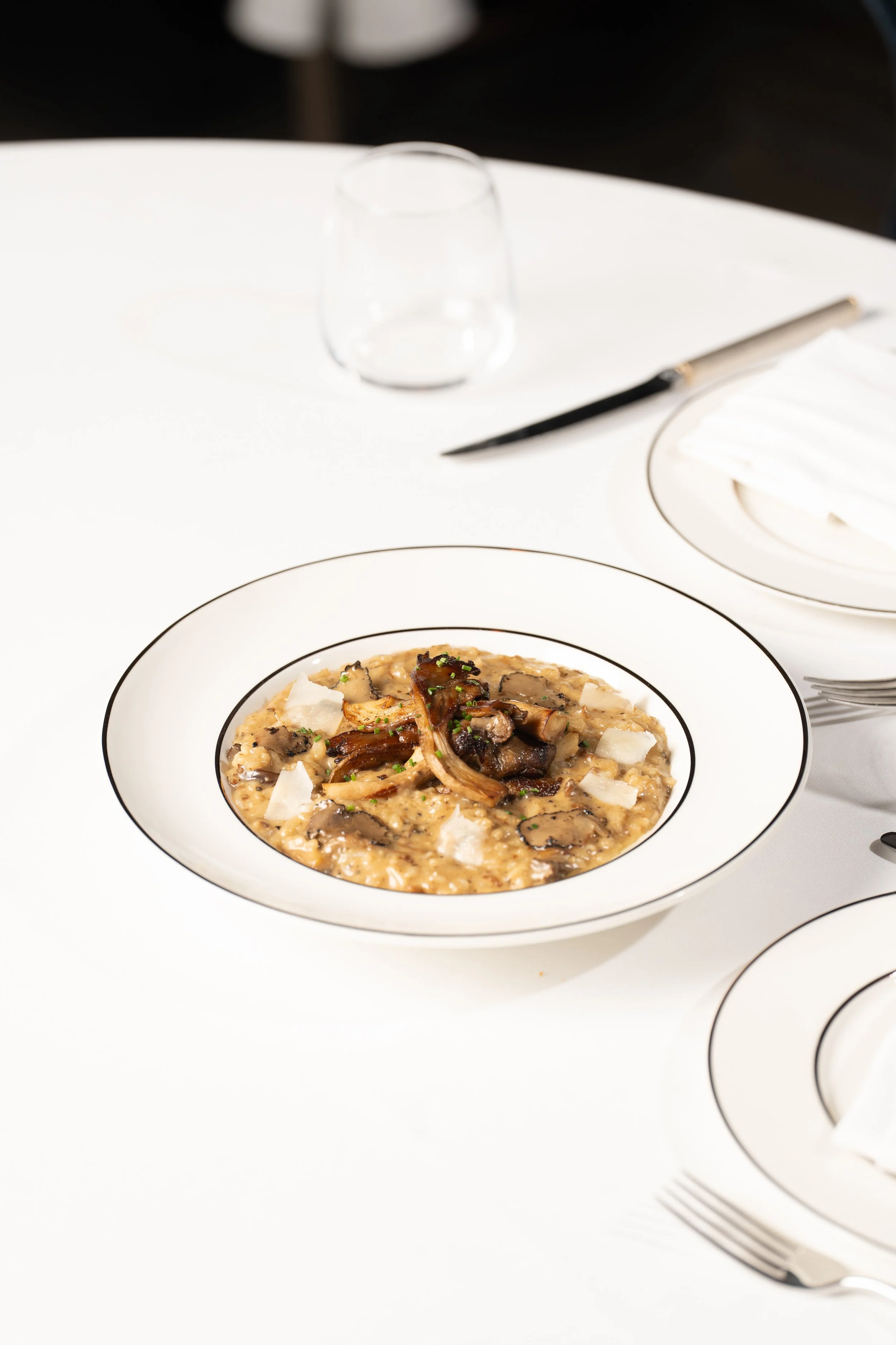 Creamy slow cooked risotto with a wild mushroom mix, folded with butter and Parmesan, finished with premium Italian truffle and a touch of white truffle oil. .