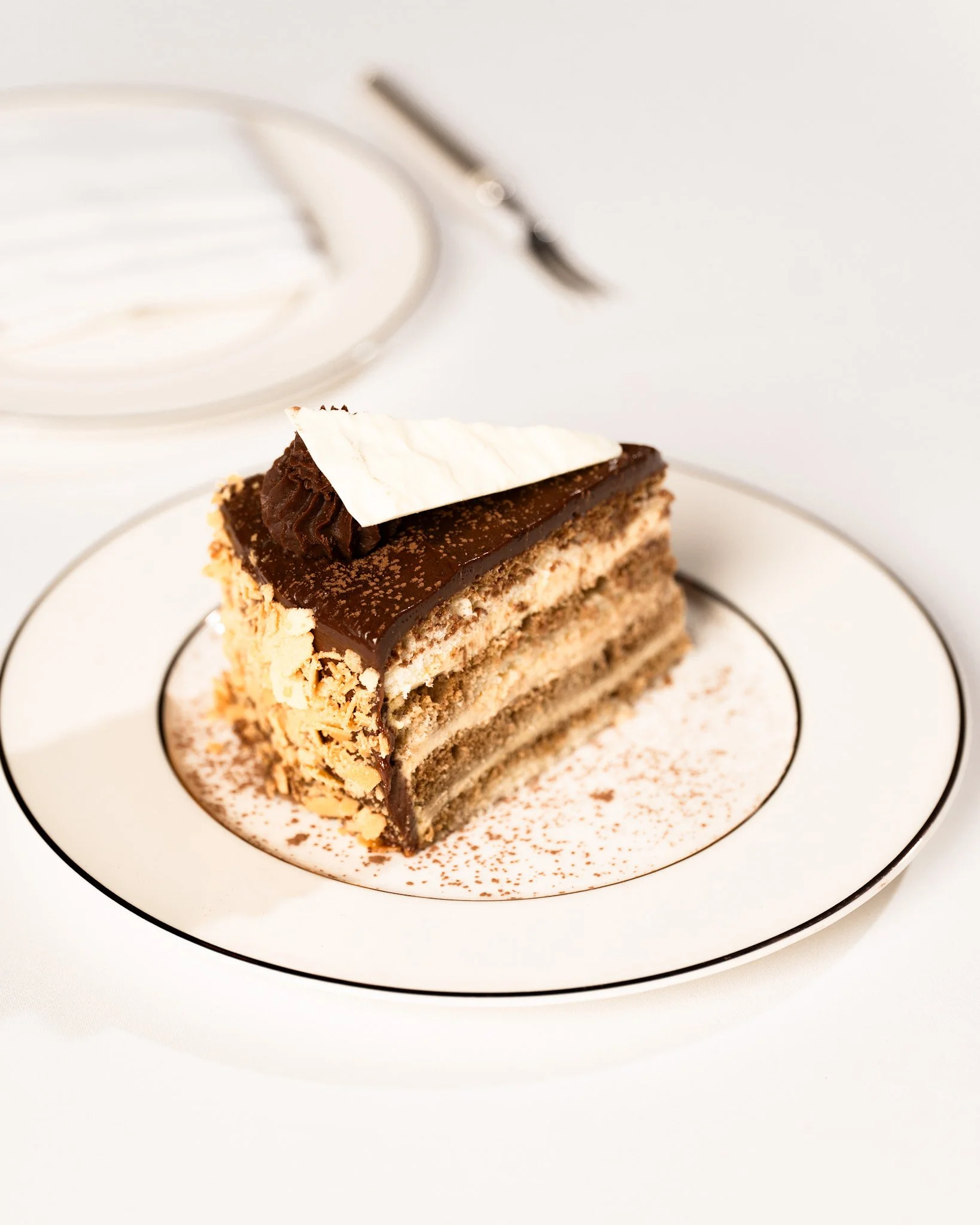 Velvety coffee cream layers with a subtle orange note and a delicate cocoa finish. 75 SAR