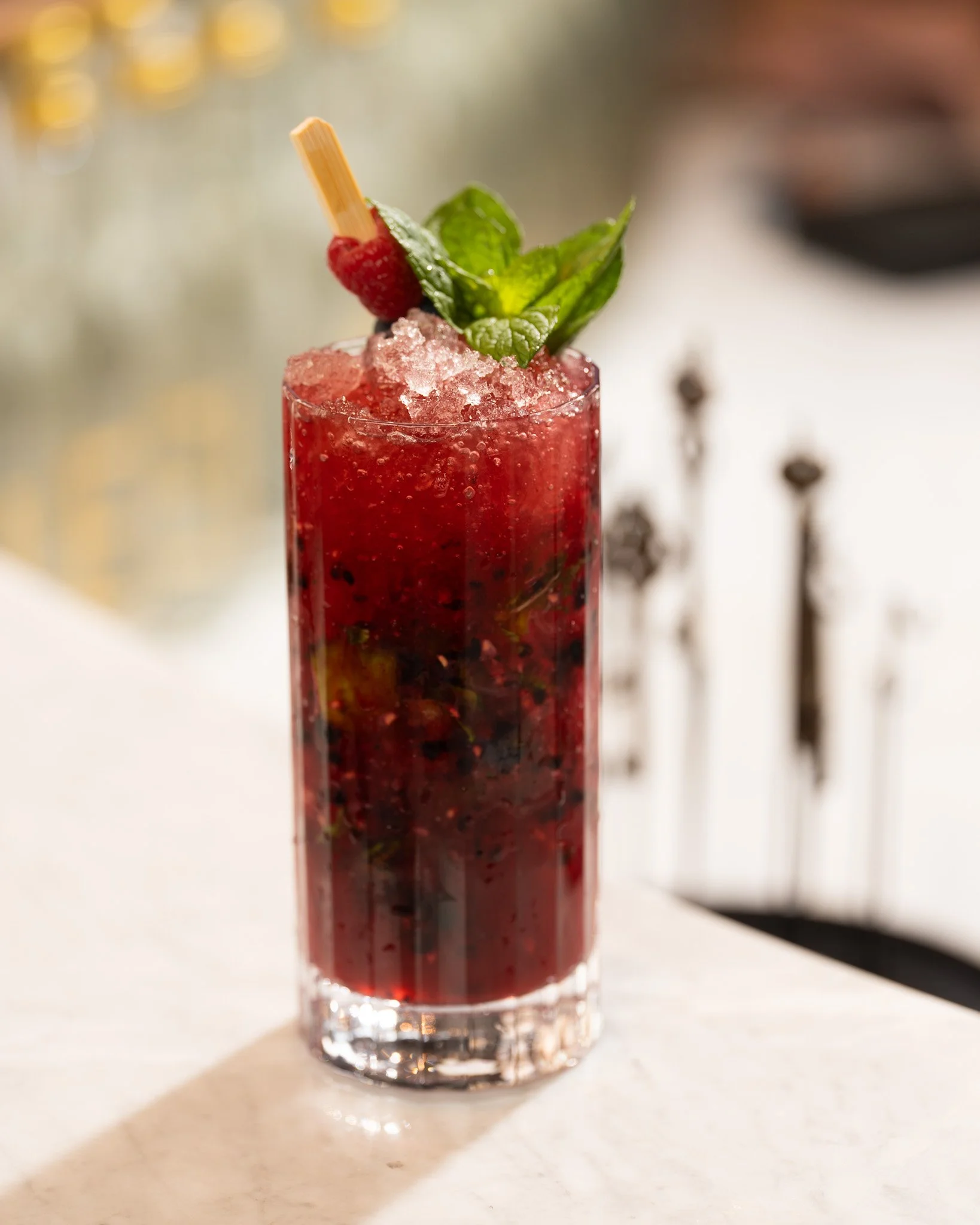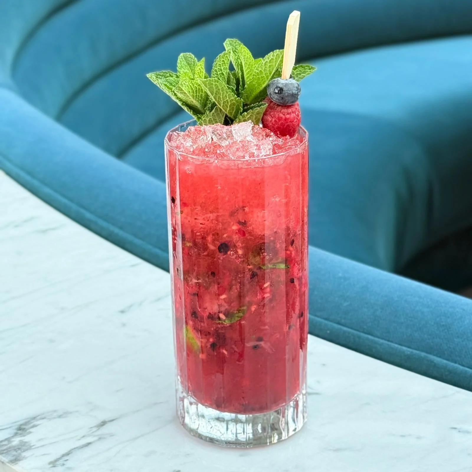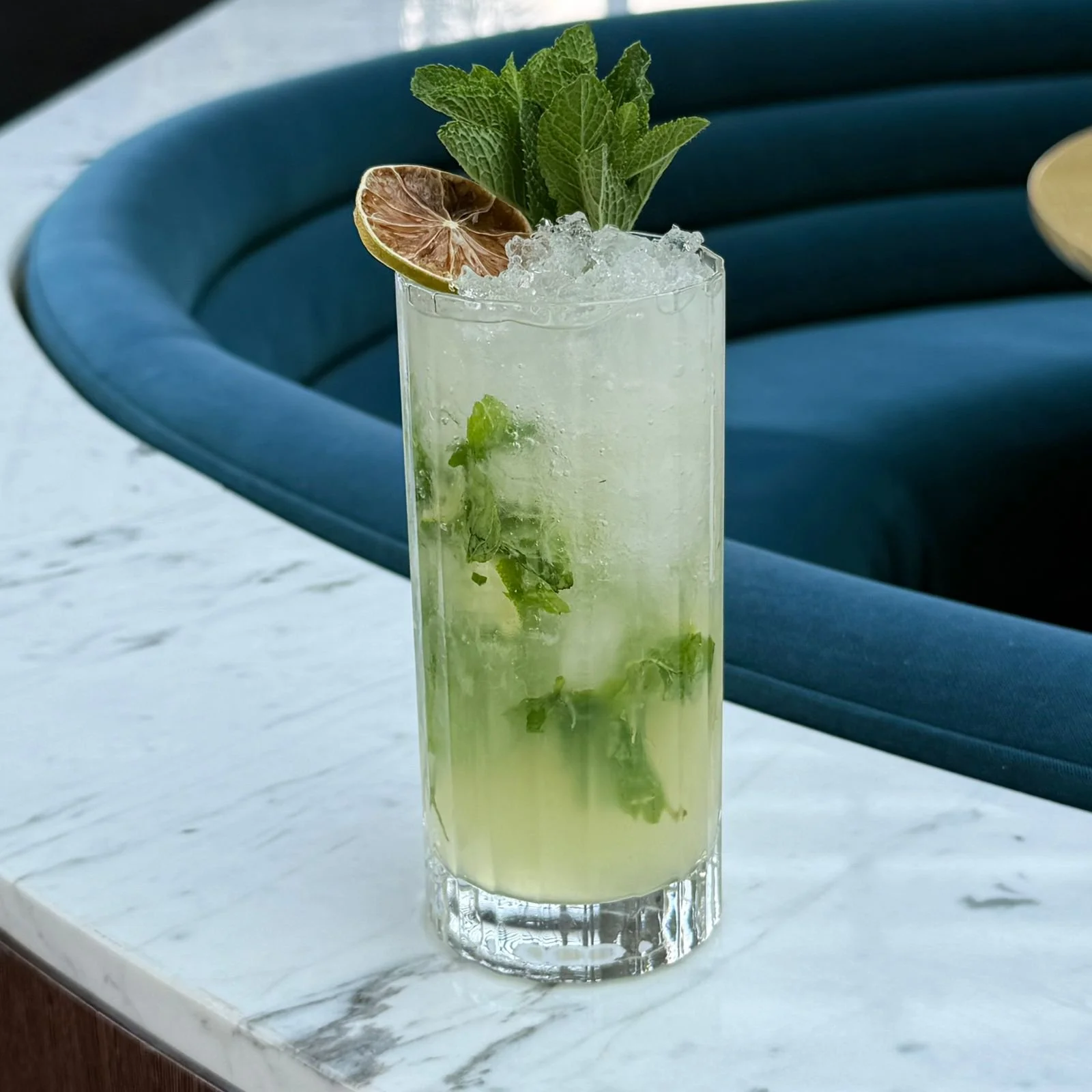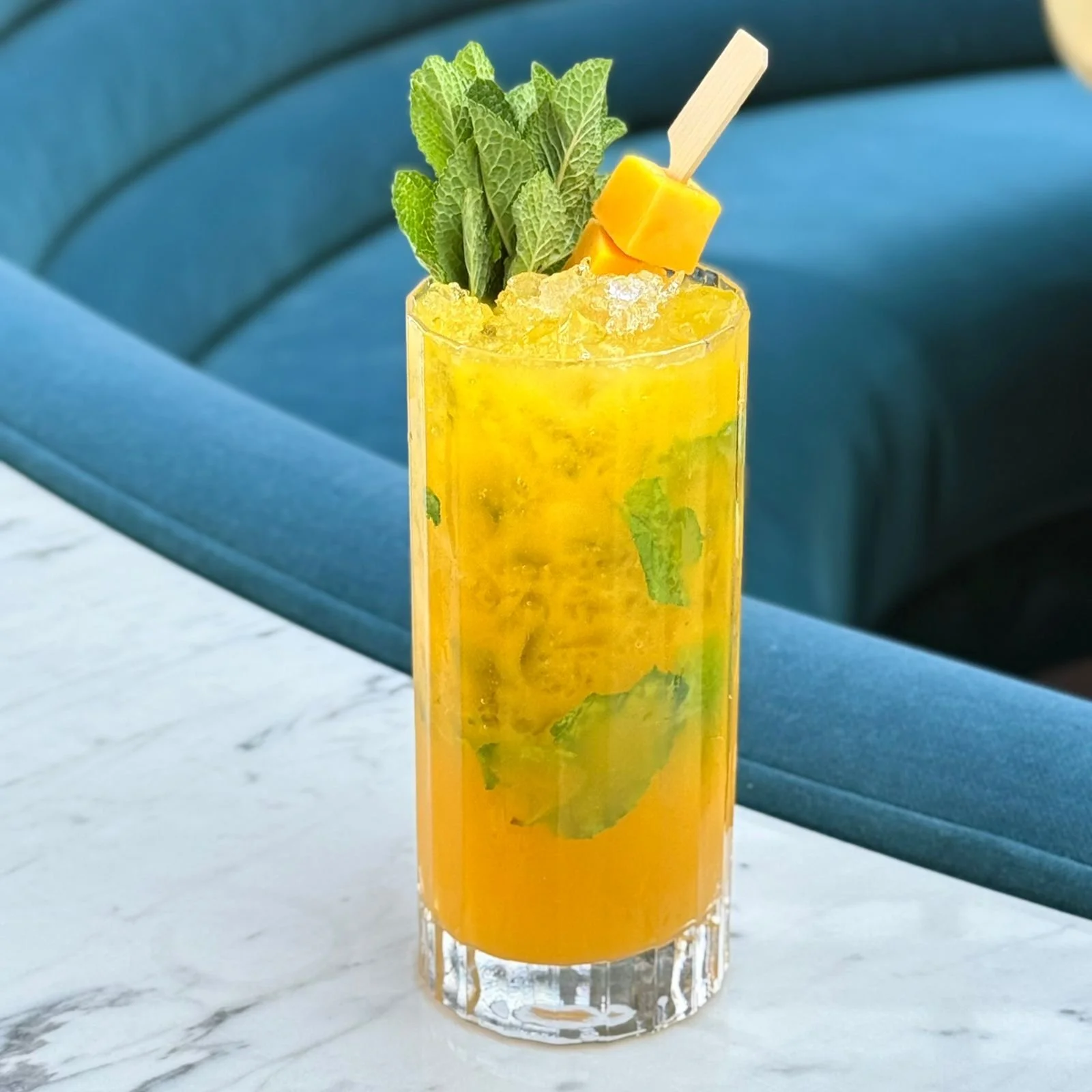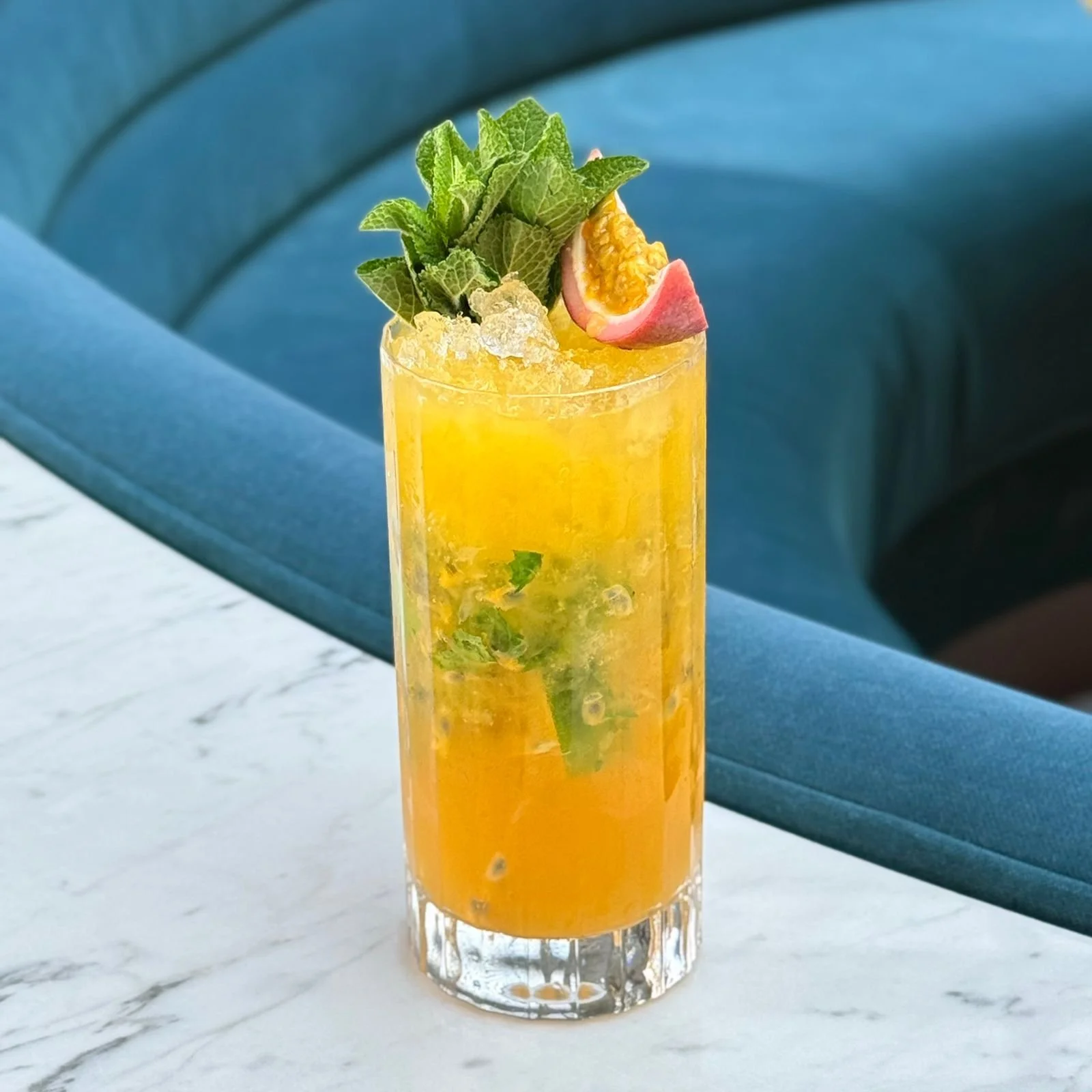 Passion fruit Mojito passionfruit, apple , lime, mint topped with soda water.